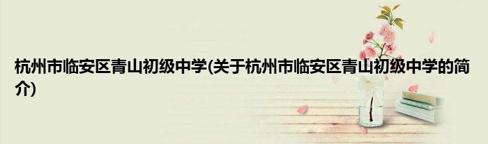 本文关于杭州市临安区青山初级中学的简介就讲解完毕,希望对大家有所帮助。