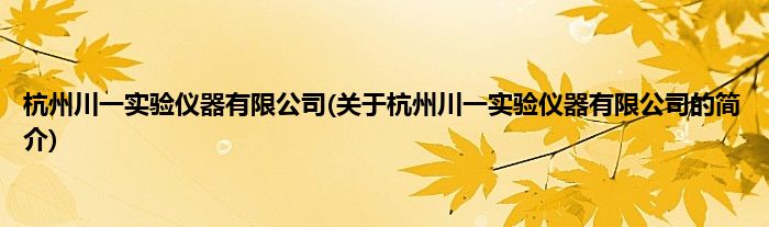 本文关于杭州川一实验仪器有限公司的简介就讲解完毕,希望对大家有所帮助。