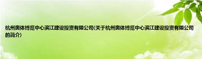 杭州奥体博览中心滨江建设投资有限公司(关于杭州奥体博览中心滨江建设投资有限公司的简介)
