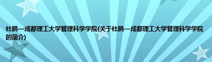 杜鹃—成都理工大学管理科学学院(关于杜鹃—成都理工大学管理科学学院的简介)