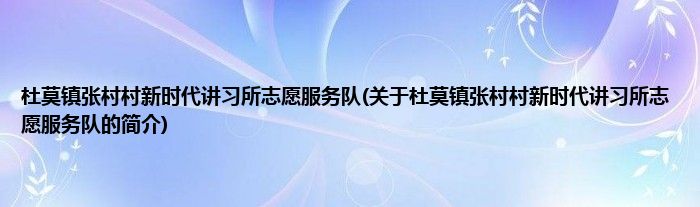 本文关于杜莫镇张村村新时代讲习所志愿服务队的简介就讲解完毕,希望对大家有所帮助。