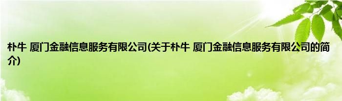 本文关于朴牛 厦门金融信息服务有限公司的简介就讲解完毕,希望对大家有所帮助。