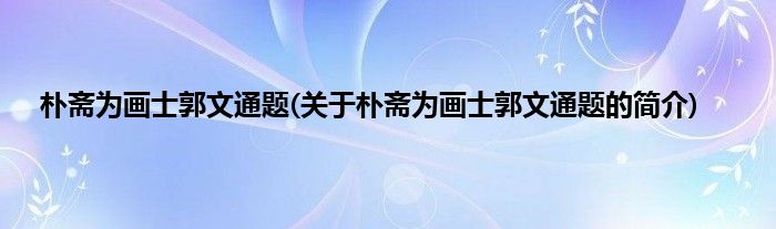 本文关于朴斋为画士郭文通题的简介就讲解完毕,希望对大家有所帮助。