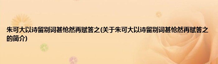 朱可大以诗留别词甚怆然再赋答之(关于朱可大以诗留别词甚怆然再赋答之的简介)