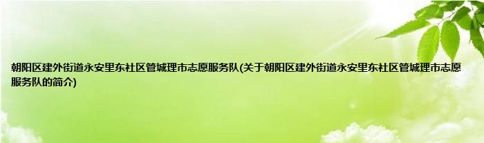 本文关于朝阳区建外街道永安里东社区管城理市志愿服务队的简介就讲解完毕,希望对大家有所帮助。