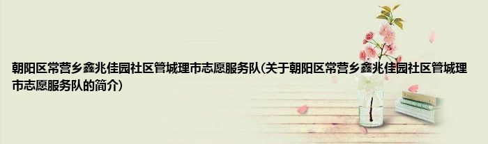 本文关于朝阳区常营乡鑫兆佳园社区管城理市志愿服务队的简介就讲解完毕,希望对大家有所帮助。