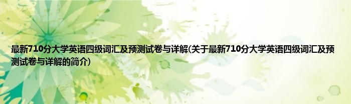 本文关于最新710分大学英语四级词汇及预测试卷与详解的简介就讲解完毕,希望对大家有所帮助。