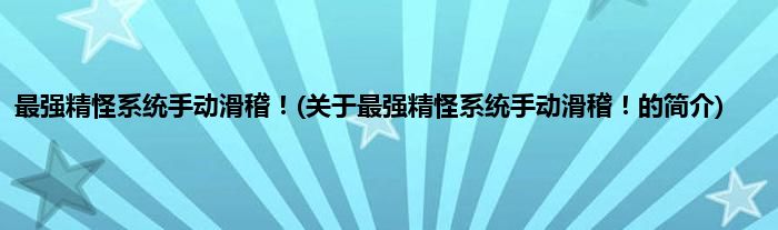 本文关于最强精怪系统手动滑稽!的简介就讲解完毕,希望对大家有所帮助。