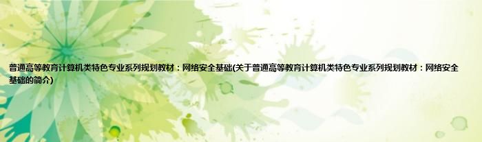 大家好,普通高等教育计算机类特色专业系列规划教材:网络安全基础,关于普通高等教育计算机类特色专业系列规划教材:网络安全基础的简介很多人还不知道,现在让我们一起来看看吧!