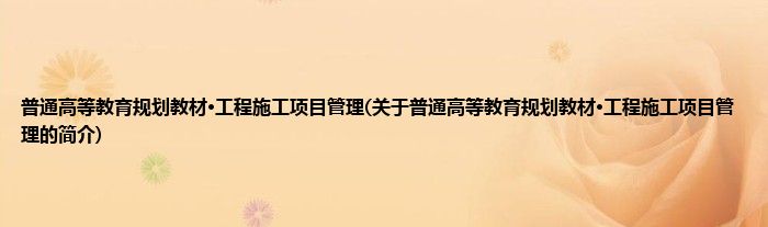 本文关于普通高等教育规划教材·工程施工项目管理的简介就讲解完毕,希望对大家有所帮助。