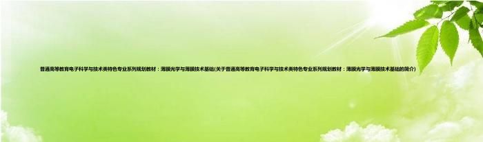 本文关于普通高等教育电子科学与技术类特色专业系列规划教材:薄膜光学与薄膜技术基础的简介就讲解完毕,希望对大家有所帮助。