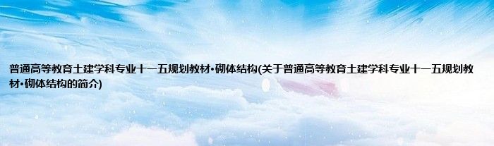 本文关于普通高等教育土建学科专业十一五规划教材·砌体结构的简介就讲解完毕,希望对大家有所帮助。