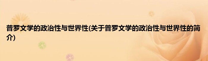 本文关于普罗文学的政治性与世界性的简介就讲解完毕,希望对大家有所帮助。