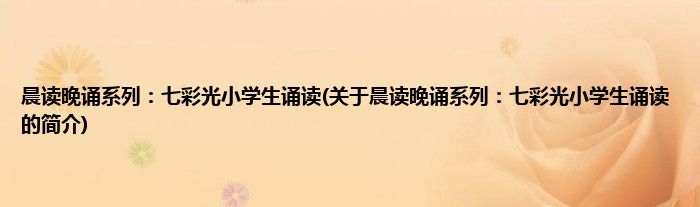 本文关于晨读晚诵系列:七彩光小学生诵读的简介就讲解完毕,希望对大家有所帮助。