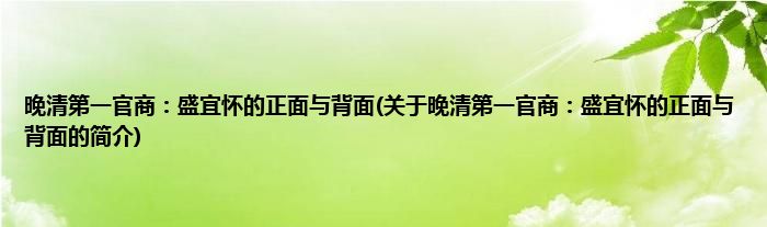 本文关于晚清第一官商:盛宜怀的正面与背面的简介就讲解完毕,希望对大家有所帮助。