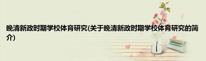 晚清新政时期学校体育研究(关于晚清新政时期学校体育研究的简介)