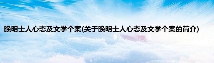 大家好,晚明士人心态及文学个案,关于晚明士人心态及文学个案的简介很多人还不知道,现在让我们一起来看看吧!