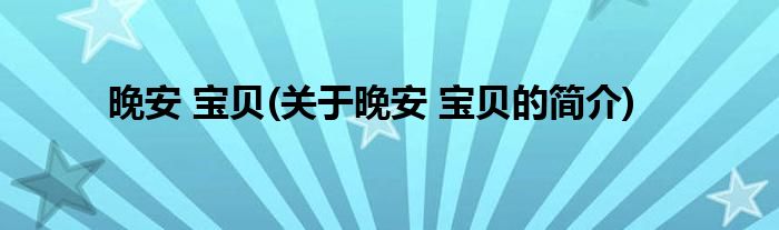 大家好,晚安,宝贝,关于晚安,宝贝的简介很多人还不知道,现在让我们一起来看看吧!
