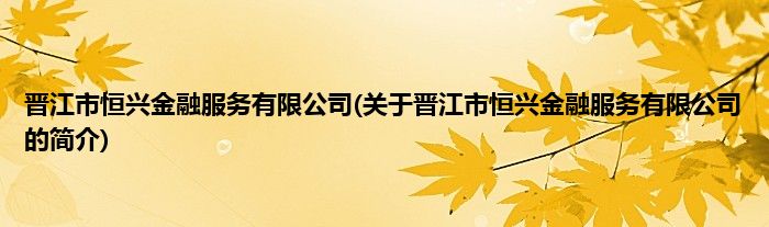 本文关于晋江市恒兴金融服务有限公司的简介就讲解完毕,希望对大家有所帮助。