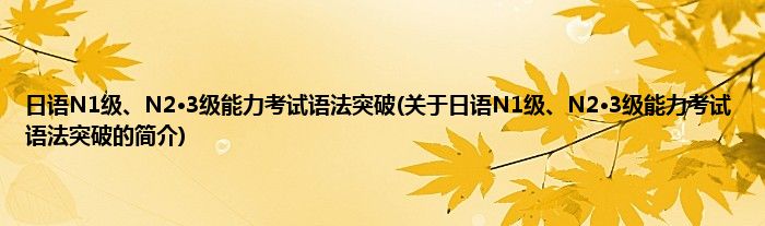 本文关于日语N1级、N2·3级能力考试语法突破的简介就讲解完毕,希望对大家有所帮助。