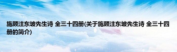 最佳答案大家好,施顾注东坡先生诗 全三十四册,关于施顾注东坡先生诗 全三十四册的简介很多人还不知道,现在让我们一起来看看吧! 1、 施顾注东坡先生诗(全三十四册)宋施元之、顾禧所注释的苏轼的诗。本文关于施顾注东坡先生诗 全三十四册的简介就讲解完毕,希望对大家有所帮助。