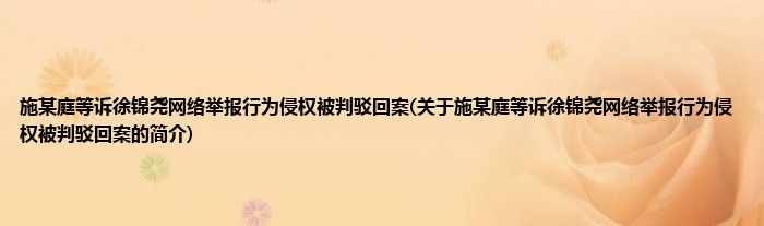本文关于施某庭等诉徐锦尧网络举报行为侵权被判驳回案的简介就讲解完毕,希望对大家有所帮助。
