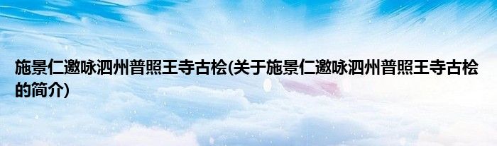 本文关于施景仁邀咏泗州普照王寺古桧的简介就讲解完毕,希望对大家有所帮助。