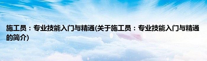 大家好,施工员:专业技能入门与精通,关于施工员:专业技能入门与精通的简介很多人还不知道,现在让我们一起来看看吧!