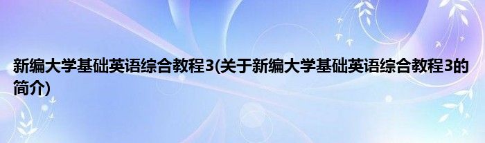 1、 《新编大学基础英语综合教程3》是2010年高等教育出版社出版的图书。