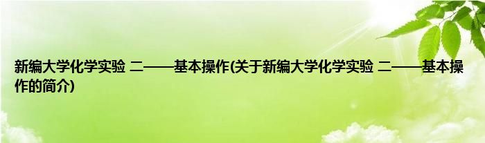 大家好,新编大学化学实验 二——基本操作,关于新编大学化学实验 二——基本操作的简介很多人还不知道,现在让我们一起来看看吧!