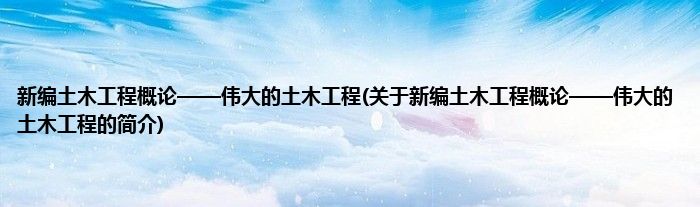 大家好,新编土木工程概论——伟大的土木工程,关于新编土木工程概论——伟大的土木工程的简介很多人还不知道,现在让我们一起来看看吧!