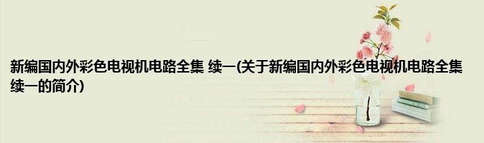 本文关于新编国内外彩色电视机电路全集 续一的简介就讲解完毕,希望对大家有所帮助。