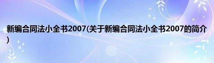 本文关于新编合同法小全书2007的简介就讲解完毕,希望对大家有所帮助。