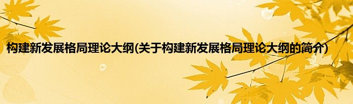 本文关于构建新发展格局理论大纲的简介就讲解完毕,希望对大家有所帮助。