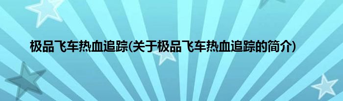 本文关于极品飞车热血追踪的简介就讲解完毕,希望对大家有所帮助。