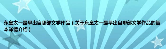 本文关于东皇太一最早出自哪部文学作品的基本详情介绍就讲解完毕,希望对大家有所帮助。