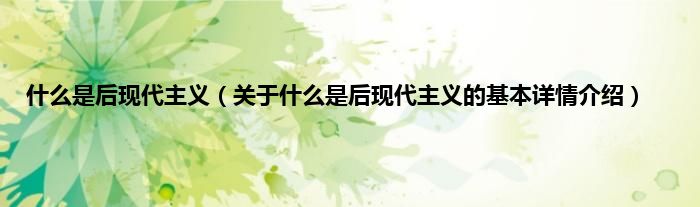 本文关于什么是后现代主义的基本详情介绍就讲解完毕,希望对大家有所帮助。