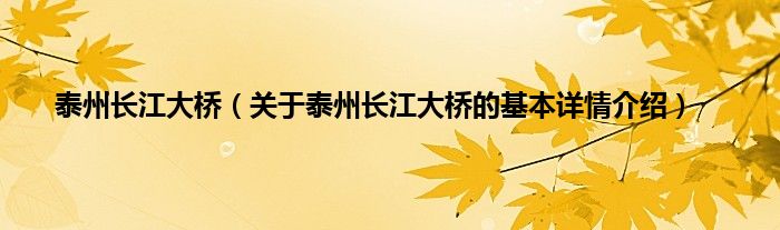 本文关于泰州长江大桥的基本详情介绍就讲解完毕,希望对大家有所帮助。