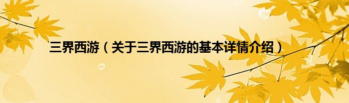 本文关于三界西游的基本详情介绍就讲解完毕,希望对大家有所帮助。