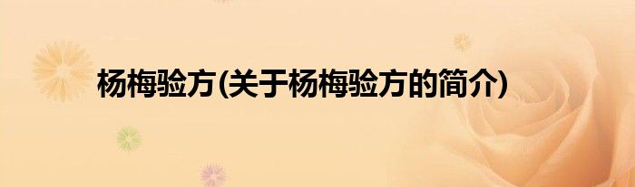 大家好,杨梅验方,关于杨梅验方的简介很多人还不知道,现在让我们一起来看看吧!