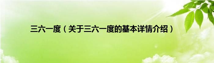 本文关于三六一度的基本详情介绍就讲解完毕,希望对大家有所帮助。