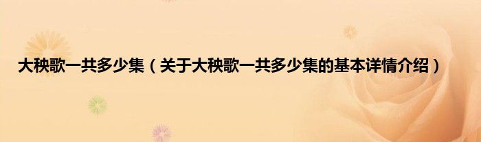 本文关于大秧歌一共多少集的基本详情介绍就讲解完毕,希望对大家有所帮助。