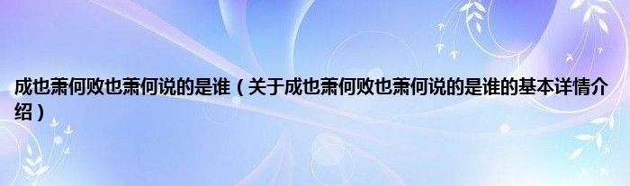 本文关于成也萧何败也萧何说的是谁的基本详情介绍就讲解完毕,希望对大家有所帮助。