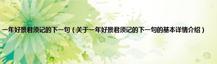 本文关于一年好景君须记的下一句的基本详情介绍就讲解完毕,希望对大家有所帮助。