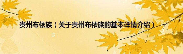 本文关于贵州布依族的基本详情介绍就讲解完毕,希望对大家有所帮助。