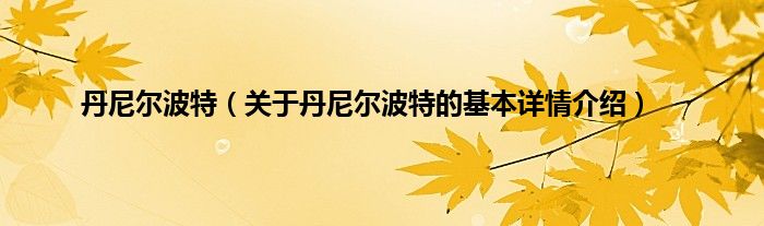 本文关于丹尼尔波特的基本详情介绍就讲解完毕,希望对大家有所帮助。