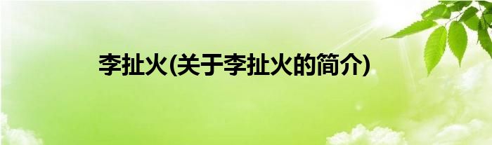 本文关于李扯火的简介就讲解完毕,希望对大家有所帮助。