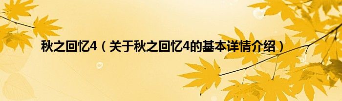 本文关于秋之回忆4的基本详情介绍就讲解完毕,希望对大家有所帮助。