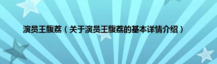 本文关于演员王馥荔的基本详情介绍就讲解完毕,希望对大家有所帮助。