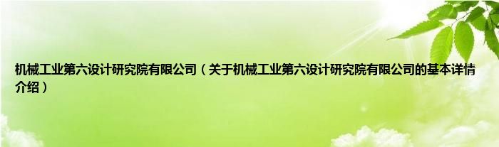 本文关于机械工业第六设计研究院有限公司的基本详情介绍就讲解完毕,希望对大家有所帮助。